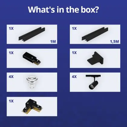 Bright Choice Complete Set 1-Fase Rail L 1 x 1,5 Meter Zwart | incl. 4x Spot + GU10 2700K 3W Dimbaar + Eindkap, Voedingsconnector en L -Verbindingsstuk