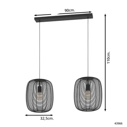 Eglo Pendelarmatuur Rinroe Staal Zwart | Geschikt voor 2x E27
