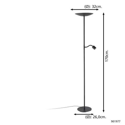 Eglo Vloerlamp Conivarino Staal Zwart 30.5W 3150lm - 827 Zeer Warm Wit | Dimbaar