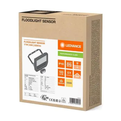 Ledvance LED Breedstraler Aluminium Zwart 17W 2200lm 100D - 830 Warm Wit | IP65 - Bewegings- En Lichtsensor - Symmetrisch