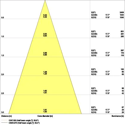De gradenbundel geeft informatie over hoe breed het licht wordt uitgestraald. Dit zit tussen de 0 en 360 graden (D). Hoe kleiner de hoek, hoe specifieker de lichtbundel is. Over het algemeen is een smalle gradenbundel perfect voor sfeer- of accentverlichting, terwijl een brede gradenbundel ideaal is om grote oppervlaktes te verlichten.