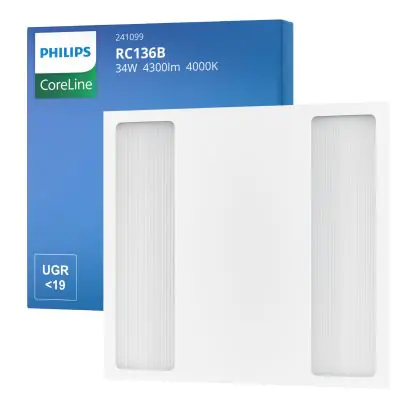 Philips LED Paneel CoreLine RC136B 25/34W 3100-4300lm - 840 Koel Wit | 60x60cm - UGR <19 - Dali Dimbaar - Selecteerbaar Wattage - 3 Uur Noodverlichting